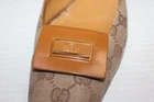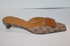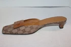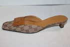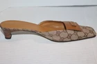 Gucci Vintage GG Canvas Mules Beige Pumps Size 9 B Beige GG fabric canvas Tan leather trims Goldtone hardware Gucci plaque in front Square toe Made in Italy A-10