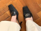 Gucci womens mules. Size 6B EU 37. Textile and leather. Heel height 8 cm / 3,15 in. Made in Italy. Condition: very good. Open to your offers Check description and photos very attentively Add your phone number to the shipping info Worldwide delivery 7-25 days. No retuns. If your need any other information about postcage, measurements, photos etc. please contact me. I will be glad to help You!