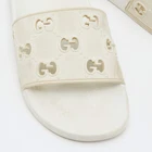 Our eBay Store About Us Contact Us Add to Favorite Sellers Gucci White GG Laser Cut Rubber Slides Size 38 These well-crafted designer flats have got you covered for all-day plans. They come in a casual design, and they look great on the feet. Product Details Brand Gucci Color White Includes The Luxury Closet Packaging Size 38 Outsole Length 26.5 cm Outsole Width 10 cm Certified by The Luxury Closet This item has gone through a detailed authentication process overseen by our experts. We offer a lifetime guarantee of authenticity on all our items. How We Check The in-house team of experts at The Luxury Closet is highly trained to verify the authenticity and the condition of the luxury products. They ensure that only 100% authentic items are put on sale.The evaluation process is unique with its own mix of assessment criteria and differs according to the category. Each item is evaluated based on the following combination of hallmarks, hardware, stitching, symmetry, material, craftsmanship, stamping, codes, hologram stickers, and packaging. Our authenticators also check if the items have been modified or amended (e.g., aftermarket diamonds, replaced batteries, repaired bags, etc.) International Buyers Import duties, taxes and charges are not included in the item price. These charges are the buyers responsibility. Please check with your country’s customs office to determine what these additional cost will be prior to buying.