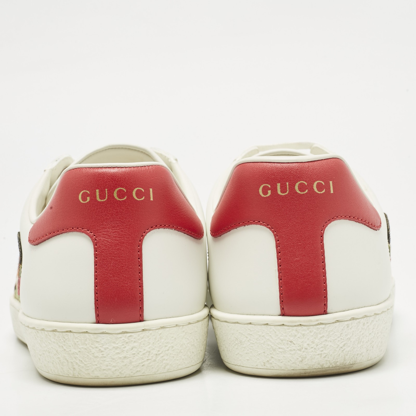 Gucci’s Ace sneakers in white leather are detailed with the house’s signature Web stripe and tiger embroidery. Sleek yet bold, these low tops offer classic shape with distinctive flair.Certified by The Luxury Closet - This item has gone through a detailed authentication process overseen by our experts. We offer a lifetime guarantee of authenticity on all our items. Import duties, taxes and charges are not included in the item price. These charges are the buyers responsibility. Please check with your country’s customs office to determine what these additional cost will be prior to buying. Our eBay Store About Us Contact Us Add to Favorite Sellers Gucci White Leather Ace Web Tiger Embroidered Low Top Sneakers Size 41.5 $312.4 Gucci’s Ace sneakers in white leather are detailed with the house’s signature Web stripe and tiger embroidery. Sleek yet bold, these low tops offer classic shape with distinctive flair. Product Details Brand Color White Dimensions Material Leather Size 41.5 Outsole Width Outsole Length Heel Height Includes Certified by The Luxury Closet This item has gone through a detailed authentication process overseen by our experts. We offer a lifetime guarantee of authenticity on all our items. How We Check The in-house team of experts at The Luxury Closet is highly trained to verify the authenticity and the condition of the luxury products. They ensure that only 100% authentic items are put on sale.The evaluation process is unique with its own mix of assessment criteria and differs according to the category. Each item is evaluated based on the following combination of hallmarks, hardware, stitching, symmetry, material, craftsmanship, stamping, codes, hologram stickers, and packaging. Our authenticators also check if the items have been modified or amended (e.g., aftermarket diamonds, replaced batteries, repaired bags, etc.) International Buyers Import duties, taxes and charges are not included in the item price. These charges are the buyers responsibility. Please check with your country’s customs office to determine what these additional cost will be prior to buying.