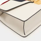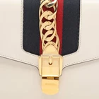 Our eBay Store About Us Contact Us Add to Favorite Sellers Gucci White Leather Small Web Chain Sylvie Flap Shoulder Bag The Sylvie bag in white leather nods to Gucci’s vintage codes with its signature Web stripe and chain detail. Compact and structured, this shoulder style exudes classic-meets-modern appeal with every carry. Product Details Brand Gucci Includes Original Dustbag, Original Box, Detachable Strap Certified by The Luxury Closet This item has gone through a detailed authentication process overseen by our experts. We offer a lifetime guarantee of authenticity on all our items. How We Check The in-house team of experts at The Luxury Closet is highly trained to verify the authenticity and the condition of the luxury products. They ensure that only 100% authentic items are put on sale.The evaluation process is unique with its own mix of assessment criteria and differs according to the category. Each item is evaluated based on the following combination of hallmarks, hardware, stitching, symmetry, material, craftsmanship, stamping, codes, hologram stickers, and packaging. Our authenticators also check if the items have been modified or amended (e.g., aftermarket diamonds, replaced batteries, repaired bags, etc.) Please note that this handbag may have a perfume scent, as it was stored and packaged in Dubai where such fragrances are commonly used. International Buyers Import duties, taxes and charges are not included in the item price. These charges are the buyers responsibility. Please check with your country’s customs office to determine what these additional cost will be prior to buying.