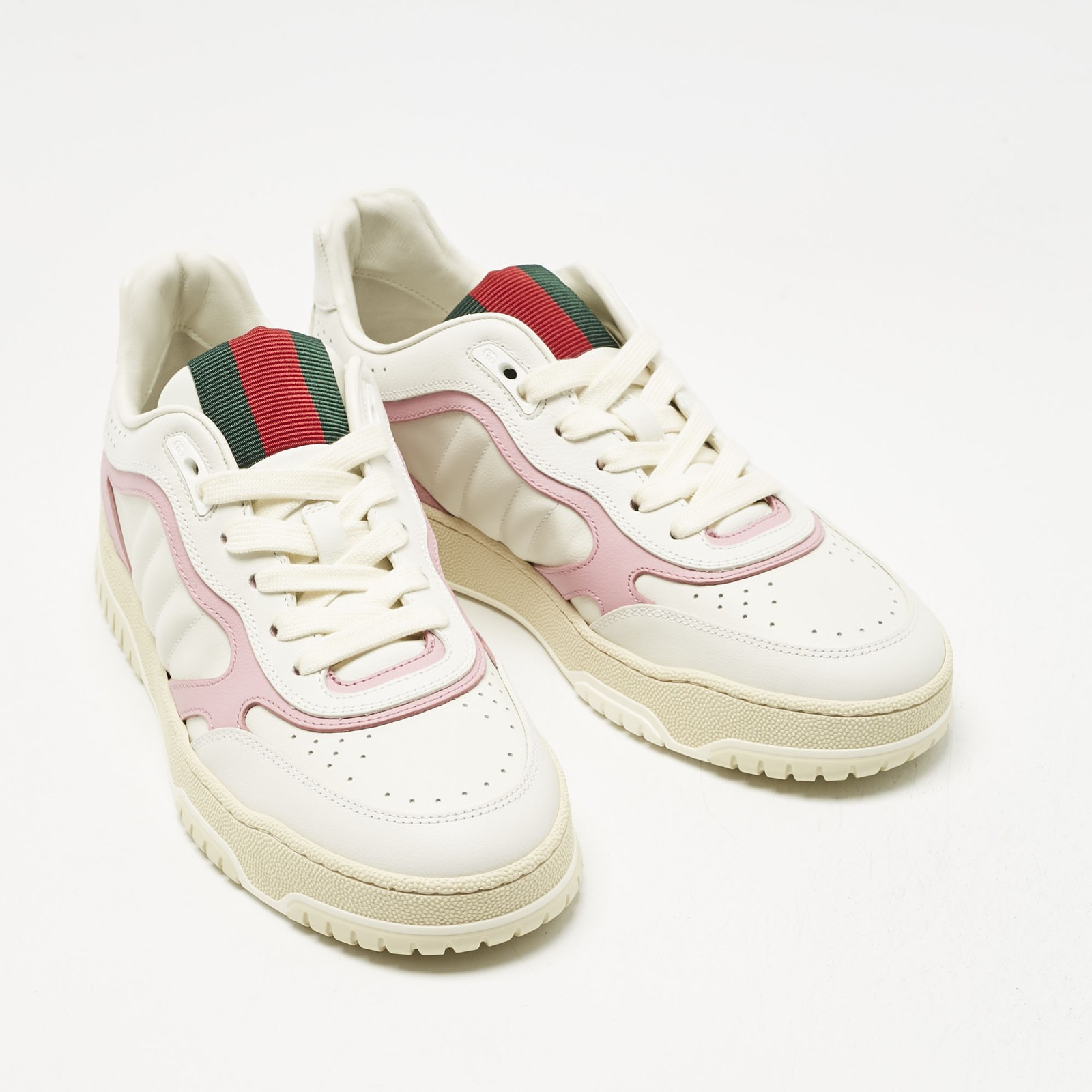 These Gucci sneakers come crafted in smooth white and pink leather with subtle GG detailing and a classic lace up structure. With their fresh palette and premium finish, they’re made for light spring looks, casual brunches, or weekend strolls with elevated ease.Certified by The Luxury Closet - This item has gone through a detailed authentication process overseen by our experts. We offer a lifetime guarantee of authenticity on all our items. Import duties, taxes and charges are not included in the item price. These charges are the buyers responsibility. Please check with your country’s customs office to determine what these additional cost will be prior to buying. Our eBay Store About Us Contact Us Add to Favorite Sellers Gucci White/Pink Leather GG Lace Up Sneakers Size 39 $786.5 These Gucci sneakers come crafted in smooth white and pink leather with subtle GG detailing and a classic lace up structure. With their fresh palette and premium finish, they’re made for light spring looks, casual brunches, or weekend strolls with elevated ease. Product Details Brand Color White Dimensions Material Leather Size 39 Outsole Width Outsole Length Heel Height Includes Certified by The Luxury Closet This item has gone through a detailed authentication process overseen by our experts. We offer a lifetime guarantee of authenticity on all our items. How We Check The in-house team of experts at The Luxury Closet is highly trained to verify the authenticity and the condition of the luxury products. They ensure that only 100% authentic items are put on sale.The evaluation process is unique with its own mix of assessment criteria and differs according to the category. Each item is evaluated based on the following combination of hallmarks, hardware, stitching, symmetry, material, craftsmanship, stamping, codes, hologram stickers, and packaging. Our authenticators also check if the items have been modified or amended (e.g., aftermarket diamonds, replaced batteries, repaired bags, etc.) International Buyers Import duties, taxes and charges are not included in the item price. These charges are the buyers responsibility. Please check with your country’s customs office to determine what these additional cost will be prior to buying.