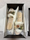 Gucci Women Sabo Sandals Flower Pattern Size 7 US Mint Excellent Key Features Elevate your style with these Gucci floral pattern slip-on shoes, purchased from Gucci Shinjuku. Crafted from canvas, leather, and wood, they feature a charming flower design with studs and a signature GG slip-resistant sole. The shoes have been worn once, showing minor dirt on the sole, with a heel height of approximately 3.5cm. The size is IT37, approximately 24cm in Japan, but please verify with official sizing. Perfect for casual or stylish occasions, these vintage Gucci slip-ons combine elegance with comfort. Item Specifics: - Brand: Gucci - Model: Floral Pattern Slip-On - Style Code: Not specified - Department: Women - Type: Slip-On Shoes - Color: Flower Pattern - Material: Canvas, Leather, Wood - Upper Material: Canvas, Leather - Outsole Material: Rubber with GG slip-resistant sole - Heel Height: Approximately 3.5cm - Shoe Width: Not specified - Shoe Shaft Specifications Brand Gucci Country Japan US Shoe Size 7 Department Women UK Shoe Size 5.5 EU Shoe Size 38 JP Shoe Size 24 Product Description Item Title Women 7.0US Gucci Flower Pattern Sabo Sandals Size I Payment Supports managed payments Please pay within 5 days after auction is finished. About Us We are located in Japan. It's our pleasure to make you happy by proposing our recommend item. If you have any questions or request about items, please feel free to ask us. International Buyers - Please Note: -Import duties, taxes, and charges are not included in the item price or shipping charges. These charges are the buyer's responsibility. -Please check with your country's customs office to determine what these additional costs will be prior to bidding/buying. -These charges are normally collected by the delivering freight (shipping) company or when you pick the item up - do not confuse them for additional shipping charges. -We do not mark merchandise values below value or mark items as - gifts - The US and International government regulations prohibit such behavior. Thank you for your understanding.