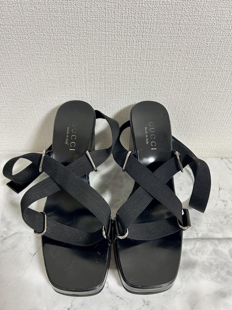 Gucci Women Wedge Sandals Black 7.0 US Adjustable Strap Mint Story Key Features Elevate your style with these Gucci wedge-sole sandals, purchased in New York. Crafted from black leather, they feature adjustable straps and ankle closure for a secure fit. The high heel (approx. 10cm) and 2.5cm toe height create a sleek, elegant silhouette while maintaining stability thanks to the wedge design. Used lightly (1-2 times), they show minor signs of wear: slight logo scuffs on the heel, some wear on the heel, and a small tear on the inner left strap leather. The outsole remains clean. Please note the box has handwritten markings. Ideal for fashion-forward occasions, these vintage sandals are a stylish addition to any wardrobe. Item Specifics: - Brand: Gucci - Product Type: Wedge Sandals - Model: Strap Sandals - Color: Black - Material: Leather - Size: 6.5 (US), 24cm (approx.) - EU Shoe Size: 39 - UK Shoe Specifications Brand Gucci Country Japan US Shoe Size 7 Department Women UK Shoe Size 5.5 EU Shoe Size 38 JP Shoe Size 24 Product Description Item Title Women 7.0US Gucci Black Strap Wedge Sole Sandals Payment Supports managed payments Please pay within 5 days after auction is finished. About Us We are located in Japan. It's our pleasure to make you happy by proposing our recommend item. If you have any questions or request about items, please feel free to ask us. International Buyers - Please Note: -Import duties, taxes, and charges are not included in the item price or shipping charges. These charges are the buyer's responsibility. -Please check with your country's customs office to determine what these additional costs will be prior to bidding/buying. -These charges are normally collected by the delivering freight (shipping) company or when you pick the item up - do not confuse them for additional shipping charges. -We do not mark merchandise values below value or mark items as - gifts - The US and International government regulations prohibit such behavior. Thank you for your understanding.