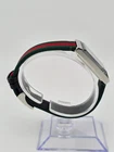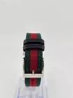 Gucci Women's G-Frame Bicolor MOP Dial Quartz Watch - YA143836 ($1150 MSRP) New with Original Box and Tags! This watch is a Shelf Pull from one of the Major Department Stores. May find few micro scratches on the watch case/band, visible under a direct and strong light. The Gucci Women's G-Frame Green & Red MOP Dial Ladies Watch is an exquisite timepiece that seamlessly merges luxury and sophistication. Encased in stainless steel, this watch features a unique red and green nylon strap, creating a striking contrast against the silver-tone hands and square case shape. The scratch-resistant sapphire crystal ensures durability and protects the dial from scratches and scuffs. Powered by a precise quartz movement, this watch provides accurate and reliable timekeeping. The tang clasp on the nylon strap ensures a secure and comfortable fit on the wrist. With water resistance up to 50 meters (165 feet), the watch is suitable for everyday wear and can withstand light splashes. The Gucci G-Frame Green & Red MOP Dial Ladies Watch is not just a timekeeping accessory; it's a statement piece that complements both casual and dressy attire. With its distinctive design and Swiss craftsmanship, this watch reflects the brand's commitment to elegance and style. Features Stainless steel case with a nylon strap. Fixed stainless steel bezel. Green and red mother of pearl dial with silver-tone hands. Dial Type: Analog. Quartz movement. Scratch resistant sapphire crystal. Pull / push crown. Solid case back. Square case shape. Case dimensions: 21 mm x 34 mm. Case thickness: 8 mm. Tang clasp. Water resistant at 50 meters / 165 feet. Functions: hour, minute. Dress watch style. Watch label: Swiss Made. Fast and Free Shipping You're already purchasing the item. Why pay additional for shipping, especially slow shipping? We get your order shipped out within 1-business day and delivered to your doorstep as quickly as possible. Competitive Pricing With our dynamic pricing model, our prices are always competitive. Our prices are some of the lowest that you will find on the internet. Rest assured that you're getting a good deal when purchasing with us. 30-day Money Back Guarantee We are committed to making sure that you leave this transaction satisfied. If you're unhappy with the product for any reason, you may return it back for your money-back or a replacement within 30 days. No questions asked!