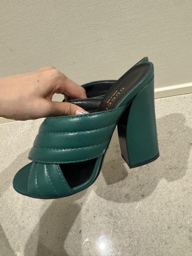 Gucci Women Leather Sandals Green 6.5US Size Thick Heel Mint Key Features Elevate your style with these pre-owned GUCCI green leather sandals. Featuring a bold, 11cm block heel, they offer both elegance and comfort. Crafted from high-quality leather, these sandals showcase GUCCI's signature beautiful form and sophisticated design. Easy to put on and take off, perfect for a chic, adult look. Worn only twice, they are in excellent condition with minimal signs of use. Size approximately 22.5cm, heel height about 11cm. A stylish addition to any wardrobe for casual or dressy occasions. Item Specifics: - Brand: GUCCI - Product Type: Sandals - Model: (not specified) - Color: Green - Department: Women - Style Code: (not specified) - UK Shoe Size: (not specified) - EU Shoe Size: (not specified) - C:US Shoe Size: 6.5 - JP Shoe Size: 22.5cm - Shoe Width: (not specified Specifications Brand Gucci Country Japan US Shoe Size 6.5 Department Women UK Shoe Size 5 EU Shoe Size 37 JP Shoe Size 23.5 Product Description Item Title Women 6.5US Gucci Leather Sandals Green Thick Heels Size 2/1 Payment Supports managed payments Please pay within 5 days after auction is finished. About Us We are located in Japan. It's our pleasure to make you happy by proposing our recommend item. If you have any questions or request about items, please feel free to ask us. International Buyers - Please Note: -Import duties, taxes, and charges are not included in the item price or shipping charges. These charges are the buyer's responsibility. -Please check with your country's customs office to determine what these additional costs will be prior to bidding/buying. -These charges are normally collected by the delivering freight (shipping) company or when you pick the item up - do not confuse them for additional shipping charges. -We do not mark merchandise values below value or mark items as - gifts - The US and International government regulations prohibit such behavior. Thank you for your understanding.