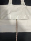 The Gucci Women's Large Canvas Tote Bag in White is a stylish and spacious shoulder bag perfect for travel. It features a classic rectangular shape with double white handles, making it both practical and fashionable. The exterior and lining are crafted from canvas, with the iconic Gucci logo serving as the pattern. This designer bag exudes a timeless elegance, making it a versatile accessory for any outfit or occasion. Made in India, this Gucci tote bag combines quality craftsmanship with a touch of luxury for the modern woman on the go.