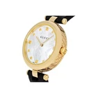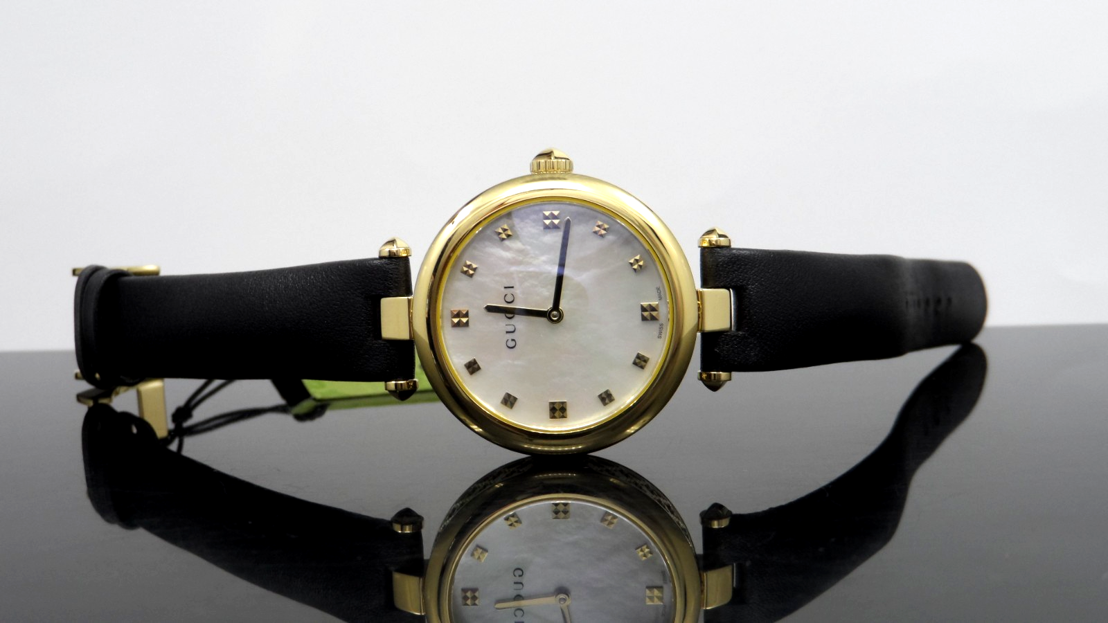 WELCOME!!! NEW CONDITION WITH TAG COMES IN GUCCI BOX WITHOUT MANUFACTURER BOOKLET ~ SEE STOCK AND ACTUAL ITEM PICTURES ~ PICTURES ARE PART OF ITEM DESCRIPTION FIRST IS STOCK PHOTO SERIAL# 18596840 G-519 WATCH INFORMATION: The Diamantissima watch features the signature Diamante pattern etched into the case. The tonal motif lends a delicate finish to the case, contrasted with a black leather strap. Product Details Light yellow gold PVD stainless steel case with a black (calfskin) leather strap. Fixed yellow gold PVD bezel. Mother of pearl dial with yellow gold-tone hands and index hour markers. Dial Type: Analog. Quartz movement. Scratch resistant sapphire crystal. Push / pull crown. Solid case back. Case size: 32 mm. Case thickness: 8 mm. Round case shape. Strap width: 18 mm. Tang clasp. Functions: hour, minute. Luxury watch style. Swiss Made WILL FIT WRIST SIZE 7"(APPROXIMATE) Gucci watches are made with carefully selected materials. Please handle with care for longer product life. Avoid placing your watch near devices generating strong magnetic fields When possible avoid any impact that might damage your watch Avoid exposing your watch to extreme temperatures or temperature variations Avoid direct contact with solvents, detergents, perfumes, mosquito repellent or any chemicals, since they may damage your watch’s components Gold watches are a creation crafted at the time: each piece is authentically individual and unique. For this reason, please take into consideration that the pieces are not water resistant and for no reason should be immersed into the water or rinsed Make sure that the crown is always pushed back into the normal running position, to prevent moisture or dust penetrating into the case Never operate the crown or chronograph push-buttons when the watch is wet or underwater to prevent water penetrating into the case Use soapy water and a soft brush for cleaning metal, PVD and ceramic bracelets, rubber, acetate and water resistant cases. Rinse with clean water to eliminate washing residue. Never use cleaning agents. Wipe down with a soft cloth It is advised to change the battery as soon as it is drained or spent as it may leak, which would damage the movement and the internal components of your watch To care for leather, exotic and fabric straps: Since these materials are natural, be sure to protect your strap from prolonged exposure to the sun and moisture, so as not to alter its shape and color. Watches containing these materials should not be used underwater. PHOTOS MAY HAVE BEEN ENLARGED AND/OR ENHANCED All measurements are approximate and may vary slightly from the listed dimensions. WE DON’T RECOMMEND WEARING YOUR WATCH IN SHOWER/SAUNA OR OTHER SIMILAR ENVIRONMENTS DO NOT PUSH BUTTONS UNDER WATER!!! IF YOU ENCOUNTER WATER DAMAGE YOUR WATCH PLEASE CONTACT MANUFACTURE, WE ARE NOT RESPONSIBLE FOR WATER DAMAGED WATCH. Return Policy If you are not satisfied with your purchase, you may return eligible items for refund within 14 days from purchase date, buyer pays return shipping. All returns must be filed no longer than 10 days from purchase date; after that time, we are no longer responsible - no exceptions! Restocking Fee There will be a 20% Restocking Fee to cover fees incurred. Return Eligibility Items must be in same condition as you received, meaning unworn unused with tags (if applicable) intact. Conditions which will void your ability to return merchandise includes: Scratching, Breaking, Wearing items, was sized by any other jeweler or lastly, if the auction explicitly says in the description that the item cannot be returned and will be returned to the customer at the customer’s expense, and the refund will not be issued. Once the return is approved, a refund will be issued to the same method used in the purchase. All returns must be inspected and approved by us before the return is finalized. Contact us to get approval of the return. Please allow up to 5 days after we receives the item to process the return and issue credit REQUIRE IMMEDIATE PAYMENT. SHIPPING USPS GROUND MAIL, DELIVERY CONFIRMATION INCLUDED. YOUR ITEM WILL BE SHIPPED SAME OR NEXT DAY AFTER PAYMENT IS CONFIRMED. NO INTERNATIONAL SHIPPING To International Customers Using Freight Forwarding Companies, Agents, or Entities: Contracting with a freight forwarding company, agent, or entity, releases Allbestwatches from any and all liability regarding your purchase from the date the purchase is received by the freight forwarding company, agent, or entity. You, the customer, assume responsibility for any and all cosmetic or mechanical defects and/or receiving the purchase from the freight forwarded. I ship to the confirmed address on file with Ebay and will not ship to a third party address Please make sure your address is correct on Ebay PRIOR to payment If necessary correct address before payment is made, corrections made after payment is submitted will NOT reflect on your purchase THE WATCH OUT OF USA CAN'T BE RETURN FOR ANY REASON.