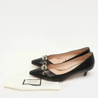 Sleek black leather meets Gucci’s signature hardware in these Zumi pumps. The pointed toe and kitten heel keep it formal.Certified by The Luxury Closet - This item has gone through a detailed authentication process overseen by our experts. We offer a lifetime guarantee of authenticity on all our items. Import duties, taxes and charges are not included in the item price. These charges are the buyers responsibility. Please check with your country’s customs office to determine what these additional cost will be prior to buying. Our eBay Store About Us Contact Us Add to Favorite Sellers Gucci Black Leather Zumi Pumps Size 38 $498.3 Sleek black leather meets Gucci’s signature hardware in these Zumi pumps. The pointed toe and kitten heel keep it formal. Product Details Brand Color Black Dimensions Material Leather Size 38 Outsole Width 8 cm Outsole Length 27 cm Heel Height 5 cm Includes Original Dustbag Certified by The Luxury Closet This item has gone through a detailed authentication process overseen by our experts. We offer a lifetime guarantee of authenticity on all our items. How We Check The in-house team of experts at The Luxury Closet is highly trained to verify the authenticity and the condition of the luxury products. They ensure that only 100% authentic items are put on sale.The evaluation process is unique with its own mix of assessment criteria and differs according to the category. Each item is evaluated based on the following combination of hallmarks, hardware, stitching, symmetry, material, craftsmanship, stamping, codes, hologram stickers, and packaging. Our authenticators also check if the items have been modified or amended (e.g., aftermarket diamonds, replaced batteries, repaired bags, etc.) International Buyers Import duties, taxes and charges are not included in the item price. These charges are the buyers responsibility. Please check with your country’s customs office to determine what these additional cost will be prior to buying.