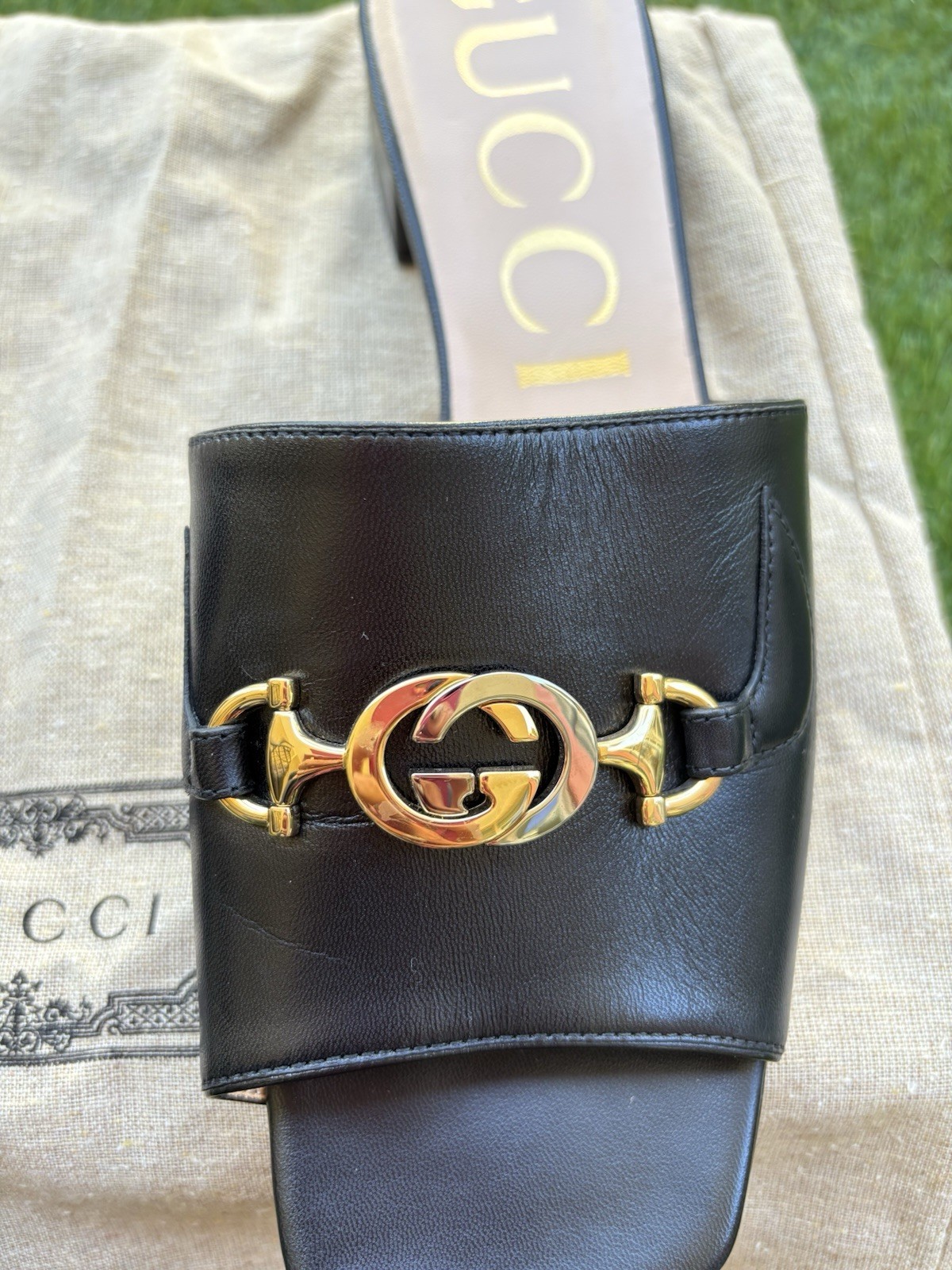 Gucci Zumi Black Leather Sandals | Size 9 | Authentic | SOLD OUT Step into luxury with these elegant Gucci Zumi Black Leather Sandals — a perfect blend of classic sophistication and modern design. Crafted in Italy from premium black leather, these sandals feature the iconic interlocking G Horsebit hardware, a signature of the Zumi line. Ideal for elevating your everyday outfits or adding a refined touch to any occasion. • Brand: Gucci • Model: Zumi Leather Sandals • Color: Black • Size: 9 US (please refer to Gucci sizing) • Material: 100% Leather • Condition: New • Includes: Original dust bag