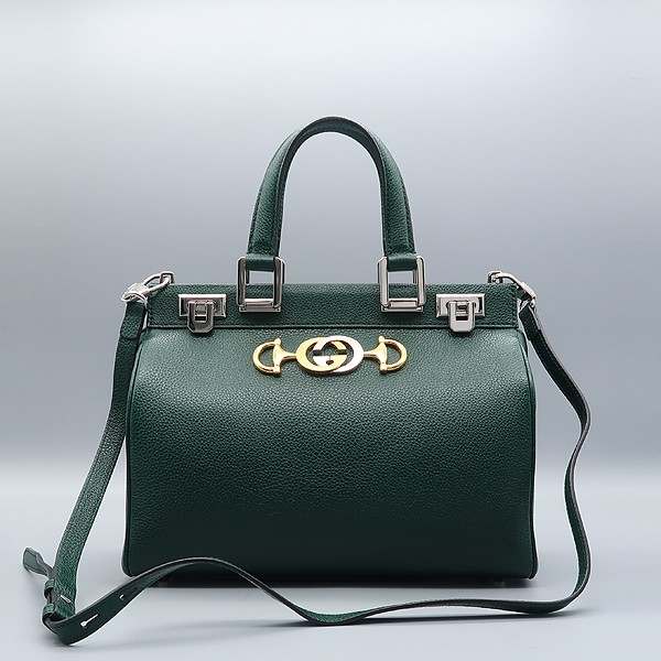 Size: Width 27CM/Height 22CM/Width 10CM/Handle Height 10.5CM/Strap Height ~45CM Color: Green Accessories: Dust/Booklet Gucci (Gucci) 569712 Dark Green Grainy Leather Zumi Small Top Handle + Shoulder Strap 2WAY [Suwon Gwanggyo Branch]. The store price is 4; 000; 000 won. The material is leather. There is a zipper pocket on the inside. Top handle bag A unique interpretation of the house's icons; this work reflects Gucci's perspective. An interlocking G horse-bit detail that combines Gucci's two iconic chords into a single symbol. Silver and gold-tone metal accents are combined on grainy leather for a modern style. The detachable strap allows you to create a variety of styles and can also be worn as a shoulder bag. A secure lock complete with hinged locks attached to both sides of the bag's top entry frame. The Gucci Zumi line was introduced at the inspiring Théâtre Le Palais in Paris. The name comes from Zumi Rosow (Zumi Rosow), an actor and experimental music musician who stood on the runway with her own handbag from the 2019 Spring/Summer Collection. 2019 Spring/Summer Fashion Show Manufacturer: Gucci Country of Manufacture: Italy Importer: Gucci Korea Dark Green Grainy Leather shinee Gold and Silver-tone Metal Decor An interlocking G horse-bit inspired by archival items. The design combines two of the house's most historic motifs with metal. Floor protection metal decoration on the bottom of the bag; double leather handle; zipper compartment, inner zipper pocket, double leather handle in the center; 10.5 cm drop adjustable and detachable leather shoulder strap; 50 cm drop double lock clasp - lift opening method Weight: approx. 1.1 kg Strap length adjustable (84 cm to 100 cm) 27 cm wide x 22 cm x 10 cm wide leather and viscose lining Made in Italy **Due to the nature of second-hand luxury goods, there may be stains not visible in the image. **