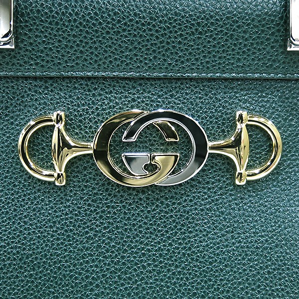 Size: Width 33.5 CM/Height 26 CM/Width 11.5 CM/Handle Height 12 CM/Strap Height ~ 48 CM Color: Green Accessories: Copy of Lotte Department Store Purchase Receipt/Booklet/ Dust/ Case Gucci (Gucci) 564714 Dark Green Grainy Medium Top Handle Tote Bag + Shoulder Strap [Cheonan Shinsegae Store]. Store price: 4; 900; 000 won. The material is leather. There is a zipper pocket on the inside. Top handle bag A unique interpretation of the house's icons; this work reflects Gucci's perspective. An interlocking G horse-bit detail that combines Gucci's two iconic chords into one symbol. Silver and gold-tone metal accents are combined on grainy leather for a modern style. The detachable strap allows for a variety of styles and can also be worn as a shoulder bag. A secure lock complete with hinged locks attached to both sides of the bag's top entry frame. The Gucci Zumi line was introduced at the Parisian Théâtre Le Palace, which evokes many inspirations. · Dark green grainy leather · shinee gold and silver-tone metal ornaments · Interlocking G horse-bit inspired by archival items. • A design showcasing a combination of two of the house's most historic motifs and metal. • Floor protection metal decoration on the bottom of the bag; 3 interior gussets; zipper compartment in the center; double leather handle; 11.5 cm drop; adjustable and detachable leather shoulder strap; 44 cm drop; double lock clasp - lift opening type; weight: approx. 1.3 kg; adjustable strap length (84 cm to 100 cm) • Width: 33.5 cm x 26 cm x width: 11.5 cm • Leather and viscose lining **Due to the nature of used luxury goods, there may be stains not visible in the image. **