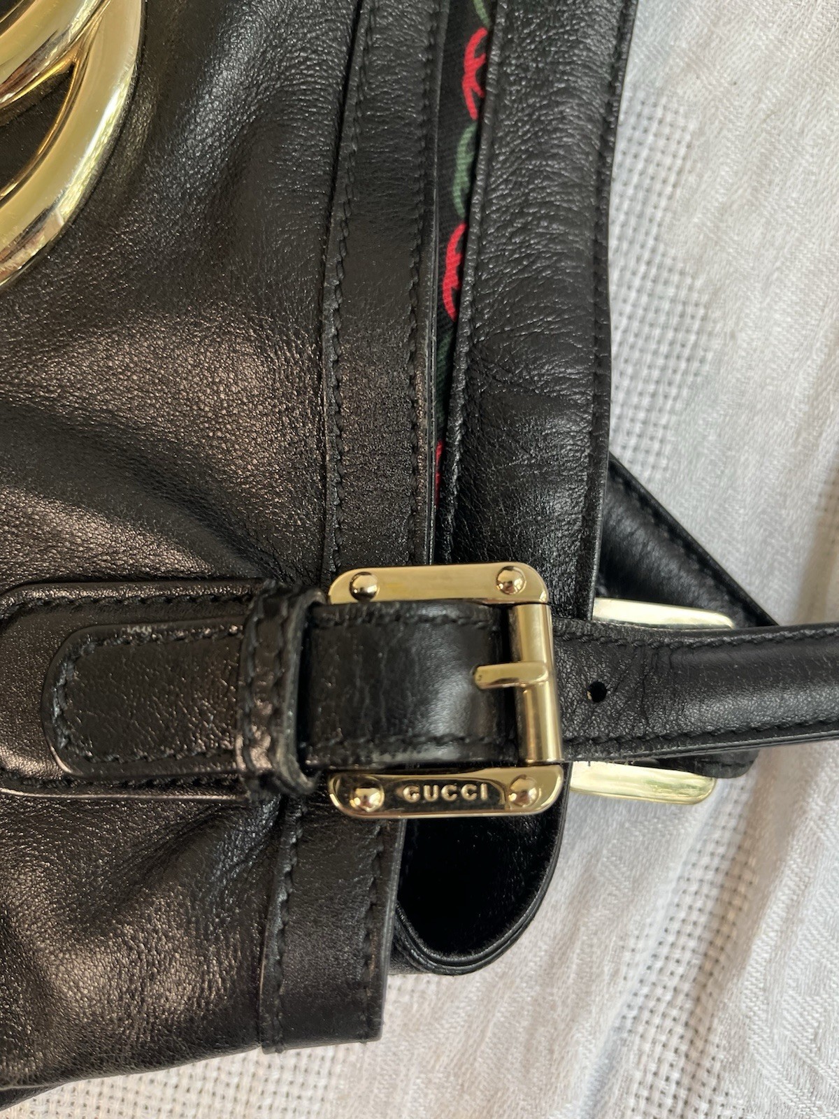 This Gucci tote is a timeless vintage gem! The black calfskin leather has a luxurious feel, and the medium size is perfect for everyday use. The scratches add character, making it unique. It's stylish, durable, and holds everything I need. A must-have for any Gucci lover!