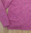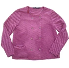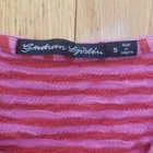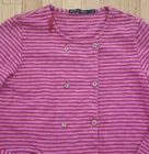 Gundrun Sjorden Women's Blazer Good pre-owned condition, no flaws Double breasted with wood buttons 100% cotton, unlined Pocket on right near bottom Pink with wavy red stripe, material is textured Marked a size S Approximate measurements 18.5 inches from armpit to armpit 19.5 inches across bottom of hem 21 inches in length from top of shoulder to bottom of hem in front