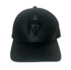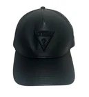 Guess Embroidered Logo Faux Leather Trucker Baseball Hat with Mesh Back Black