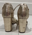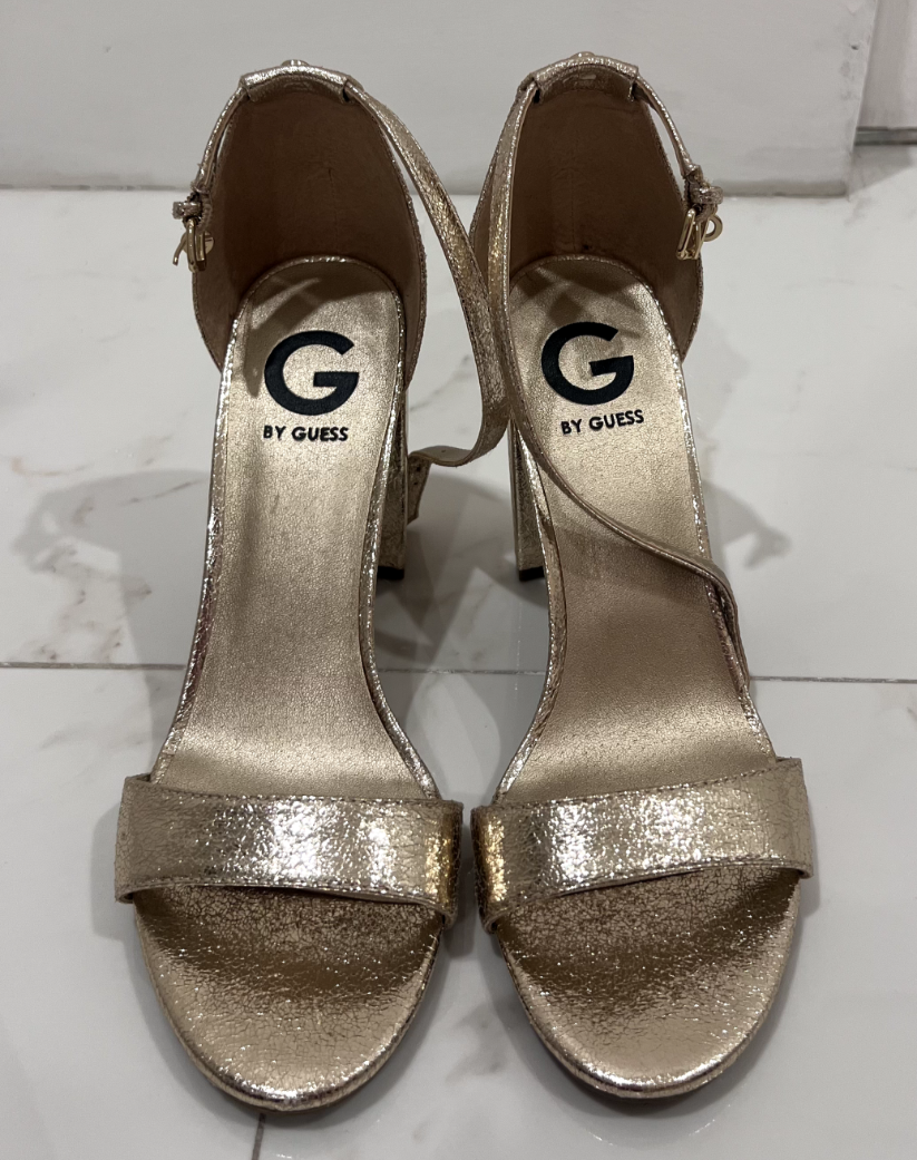 The Guess Sparkly Gold Block Heels are a stylish and sophisticated choice for women looking to add a touch of glam to their outfit. These block heels feature a gold color with a sparkly finish, perfect for adding a metallic touch to any ensemble. The Guess brand is known for its quality and trendy designs, making these heels a fashionable and reliable choice for any occasion. Perfect for adding a touch of sparkle to any outfit, these block heels are a must-have for any fashion-forward woman.