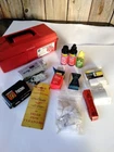 As is This gun cleaning accessory set is perfect for any firearm enthusiast. The set includes a variety of red bottles that are 1/2 full, making it a great value for your money. The set is designed for easy use and will help keep your gun clean and efficient. The set is ideal for those who are looking for a comprehensive cleaning kit that is both effective and easy to use. The red bottles add a touch of style to the set, making it a great addition to any collection. Whether you are a seasoned gun owner or just starting out, this cleaning accessory set is a must-have.