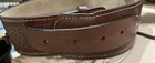 These distinctive leather pistol holster belts are ideal for daily use, hunting, ranch work, or add to your collection. Premium, real, hand-tooled leather is used to make these belts, which are crafted for a smooth draw and easy re-holstering. An incredibly stunning and amazing piece. Size 38"-40"