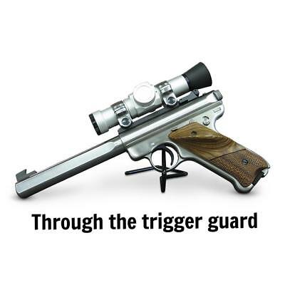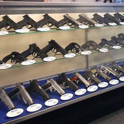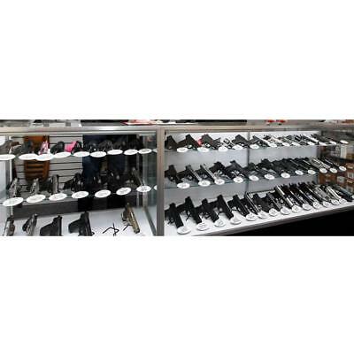 Individual display stands for handguns. For use on glass shelves Vinyl coated wire Fits guns as small as a 22 caliber Chamfered (rounded) end Bend angled prong to accommodate different sizes of guns Back Kikstands give a great presentation of your inventory, allow for more guns to be displayed, and are easily accessed by sales associates. When set at an angle, instead of flat on the shelf, more guns are able to fit in the same area. Back Kikstands will insure that every time the gun is taken out of the cabinet it is returned to the same position. When to use: If your counter has a glass shelf. Holds to glass shelving and keeps the gun in place - even when bumped.