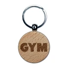 Gym Bold Text Engraved Wood Round Keychain Tag Charm