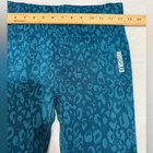 GymShark Women's Adapt Animal Seamless Leggings Teal Blue Size Medium (Size Tag Was Removed) - High waisted fit - All-over animal jacquard - Ruched detail to bum - Elongated ribbed waistband - Printed logo to upper left hip and back left ankle - 79% Polyamide, 15% Polyester, 6% Spandex