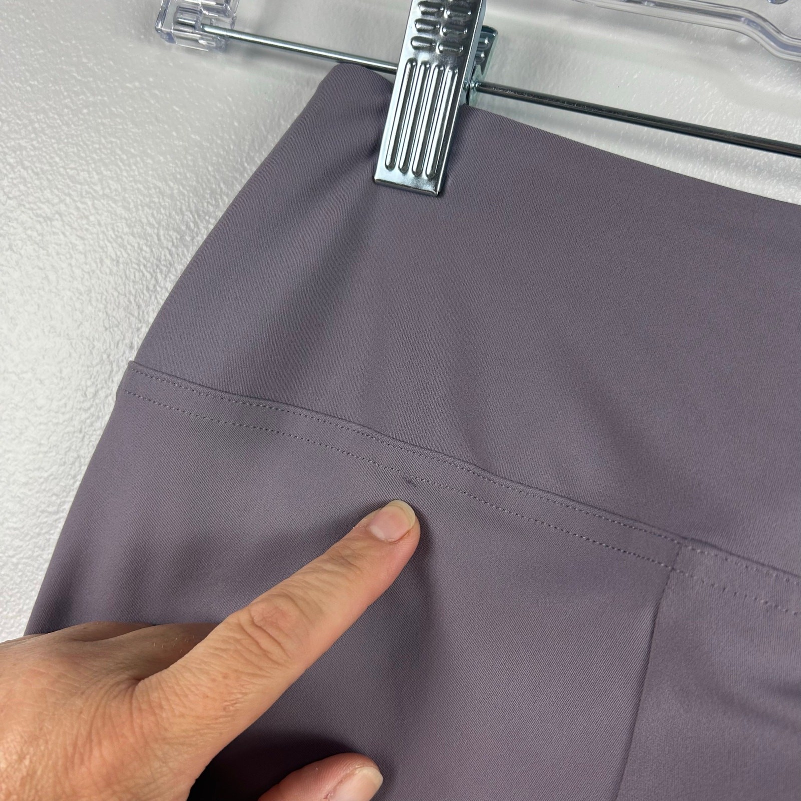 Brand: GymShark Features: Crossover leggings in Slate Lavender. Condition: Excellent preloved condition Size: No size tag. Please see measurements below. Waist measurement: 22” Length measurement: 34” Inseam: 25.5”