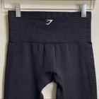 Power your performance with the Energy Seamless Leggings. Fully functional and fully shape-enhancing, these gym leggings help you through cardio and weights alike with support and confidence. Pull-on. High-waisted fit. Eyelet detailing. Glute contouring with mesh structures. Ribbed waistband. Heat-sealed logo on hip and back waistband. **PLEASE NOTE: The size / care tag has been removed! SEE MEASUREMENTS BEFORE PURCHASING!** Size Small Measures Flat Approximately: 11.75" Waist, 8" Rise, 23" Inseam 93% Nylon / 7% Elastane Machine Washable **These leggings are preowned, and show light wear! No flaws! Excellent Condition!**