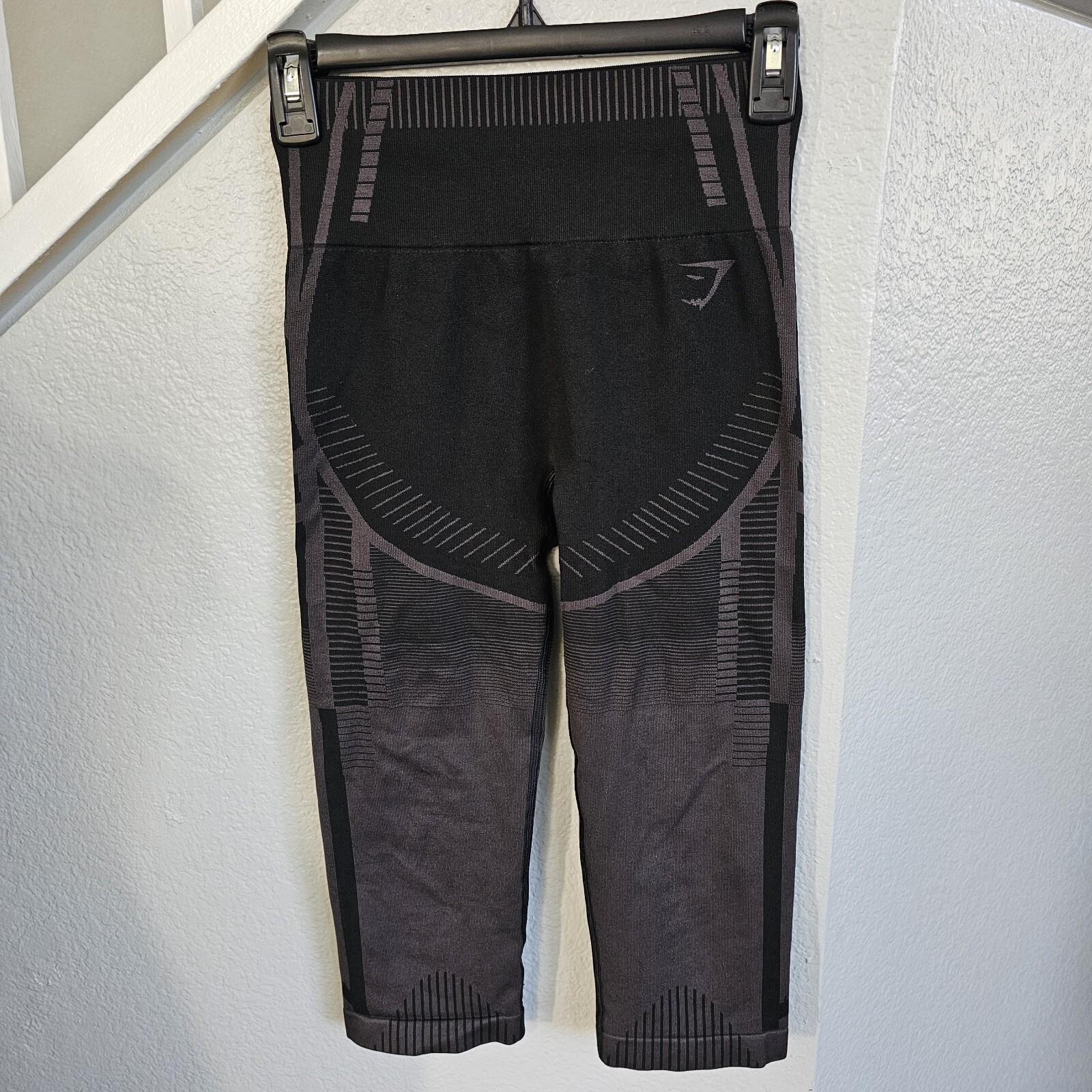 Gymshark Black Compression Yoga Seamless Mid Waist Capris Leggings Women's size small, pre-owned condition, please refer to pictures for more details and measurements.