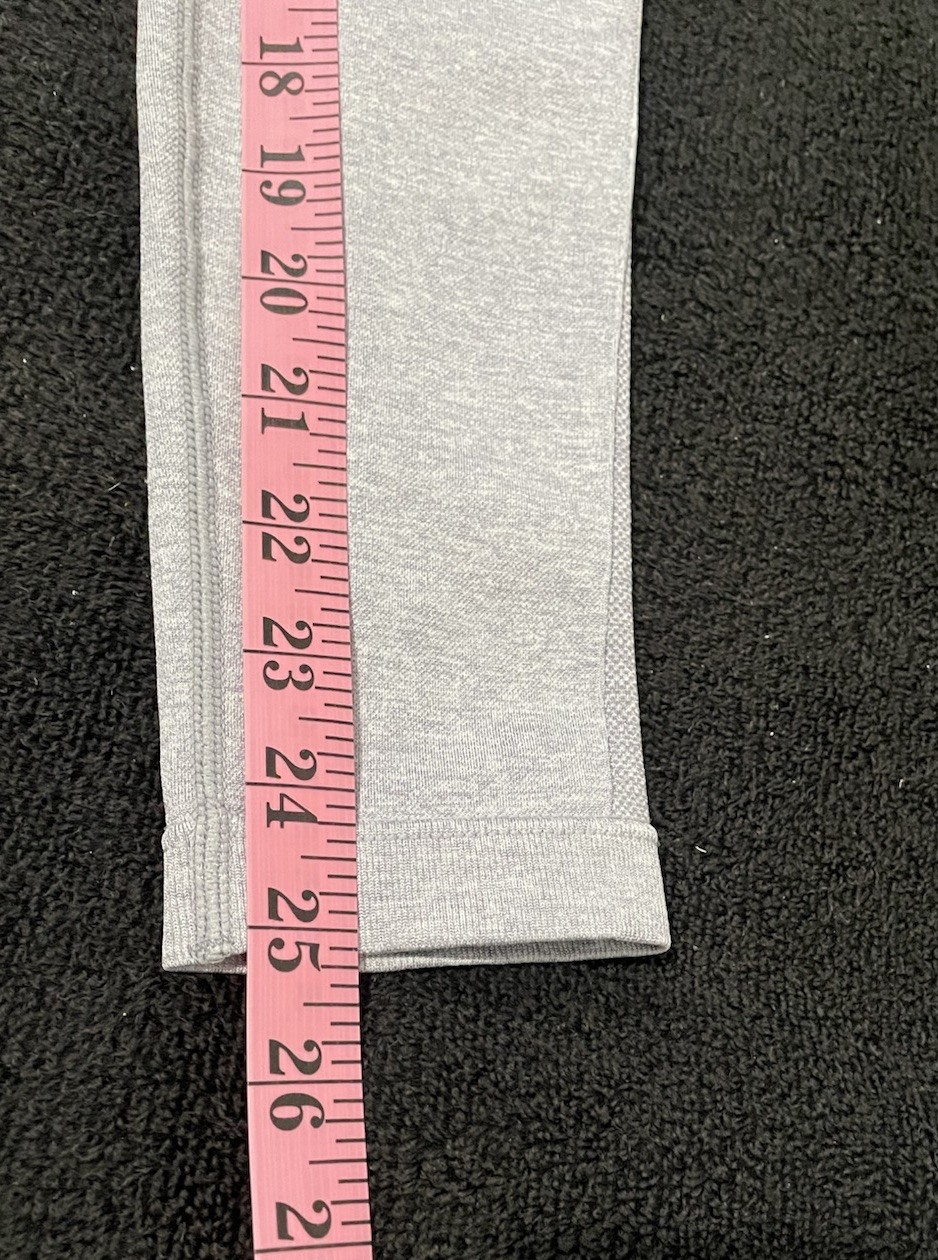 The Gymshark Flex High Waisted Leggings in women's size XS offer a stylish and functional option for various activities. These leggings feature a pull-on closure, a 25-inch inseam, and are made from a blended fabric of polyester, nylon, and elastane for comfort and breathability. With a solid gray color and large logo design, these leggings are perfect for travel, activewear, or casual outings. The high-waisted style, compression area at the waist, and athletic fit make them ideal for activities like yoga, running, and weightlifting. Machine washable for easy care, these leggings combine style with performance for any season. Please see pictures. Size tags were cut off, XS is an estimate based on what I’ve seen