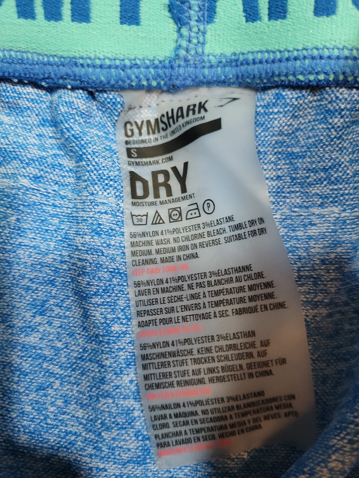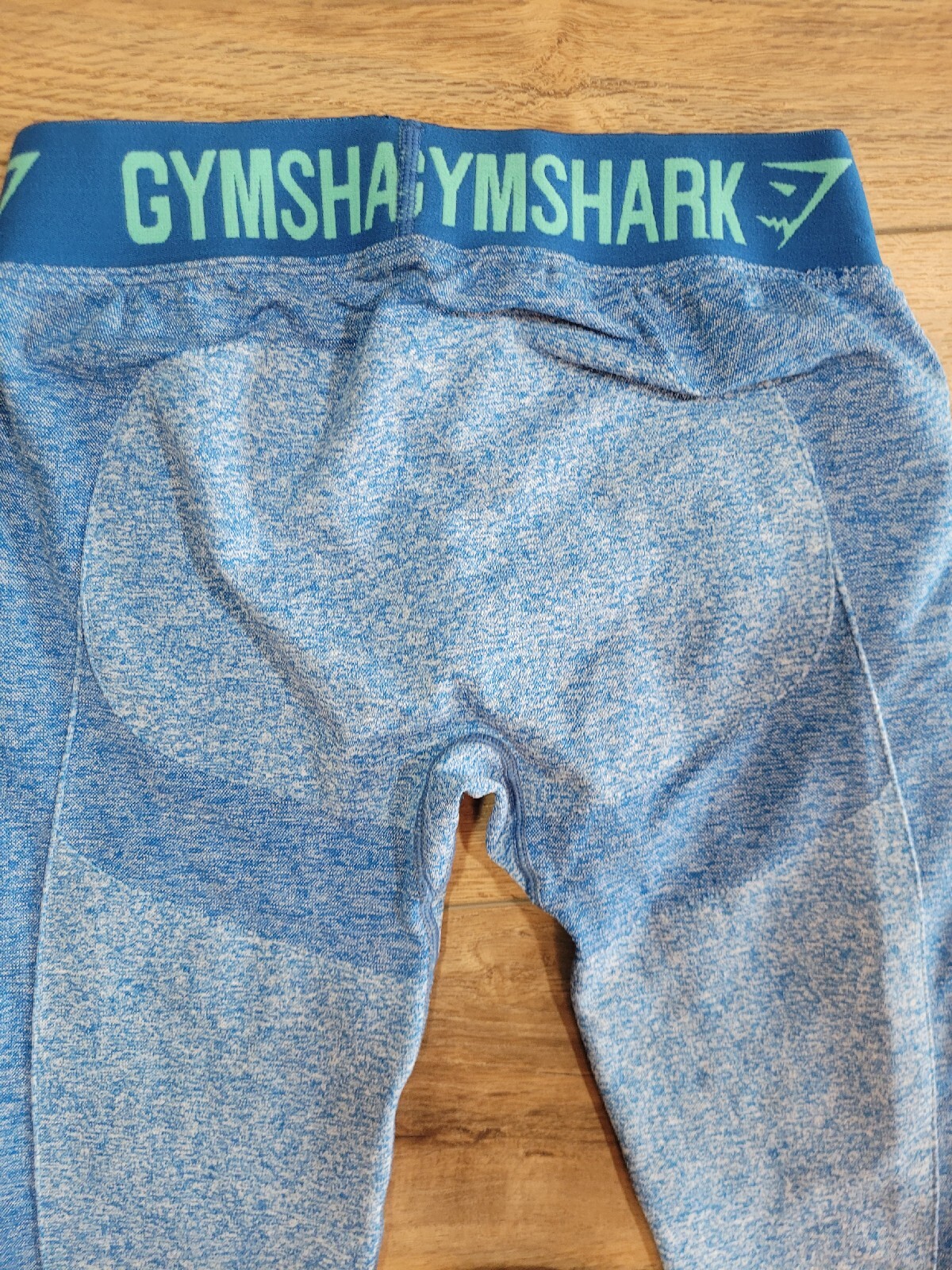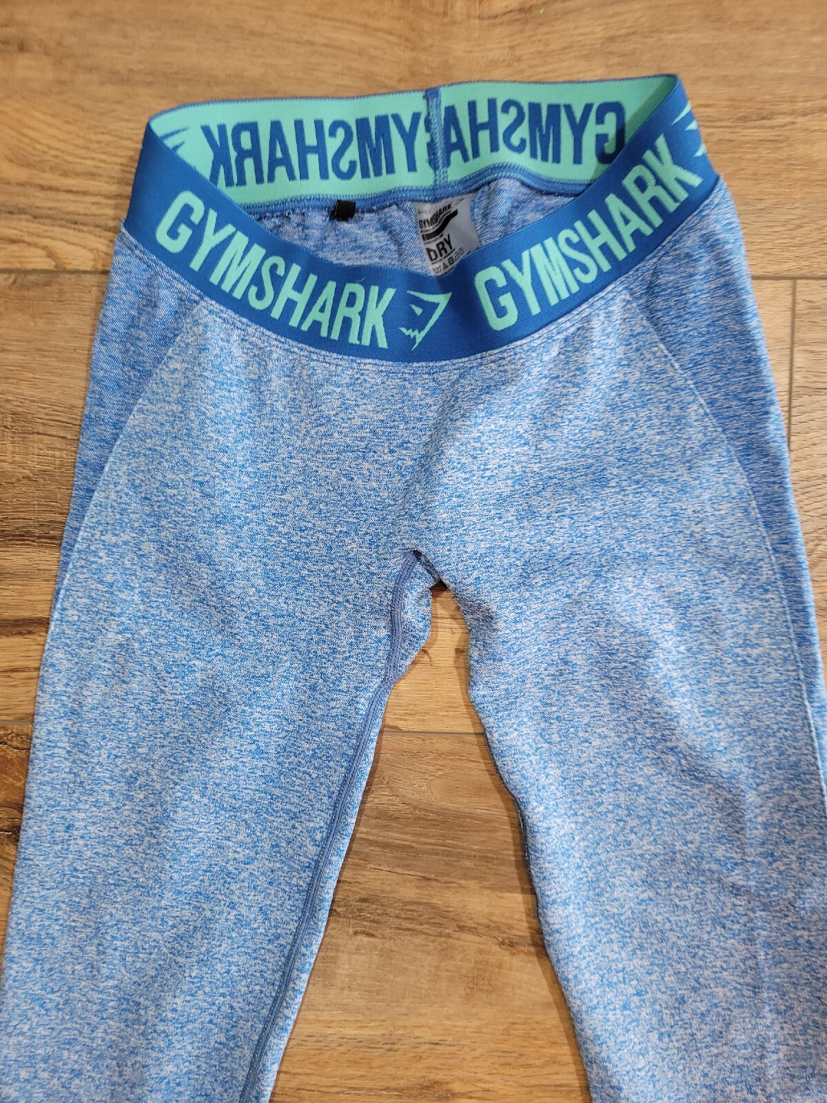 Upgrade your active wear collection with these Gymshark Flex Seamless Leggings in size small. The heather blue and teal logo waistband adds a pop of color to your workout outfit, while the solid pattern and skinny leg style create a sleek and flattering look. Made with a blend of polyester, nylon, and spandex, these leggings provide compression in the leg area for added support during gym and training sessions, crossfit, and bodybuilding. The pull-on closure and seamless feature make for a comfortable fit, while the machine washable garment care ensures easy maintenance. Perfect for all seasons, these leggings are a must-have for any athletic woman's wardrobe. P54