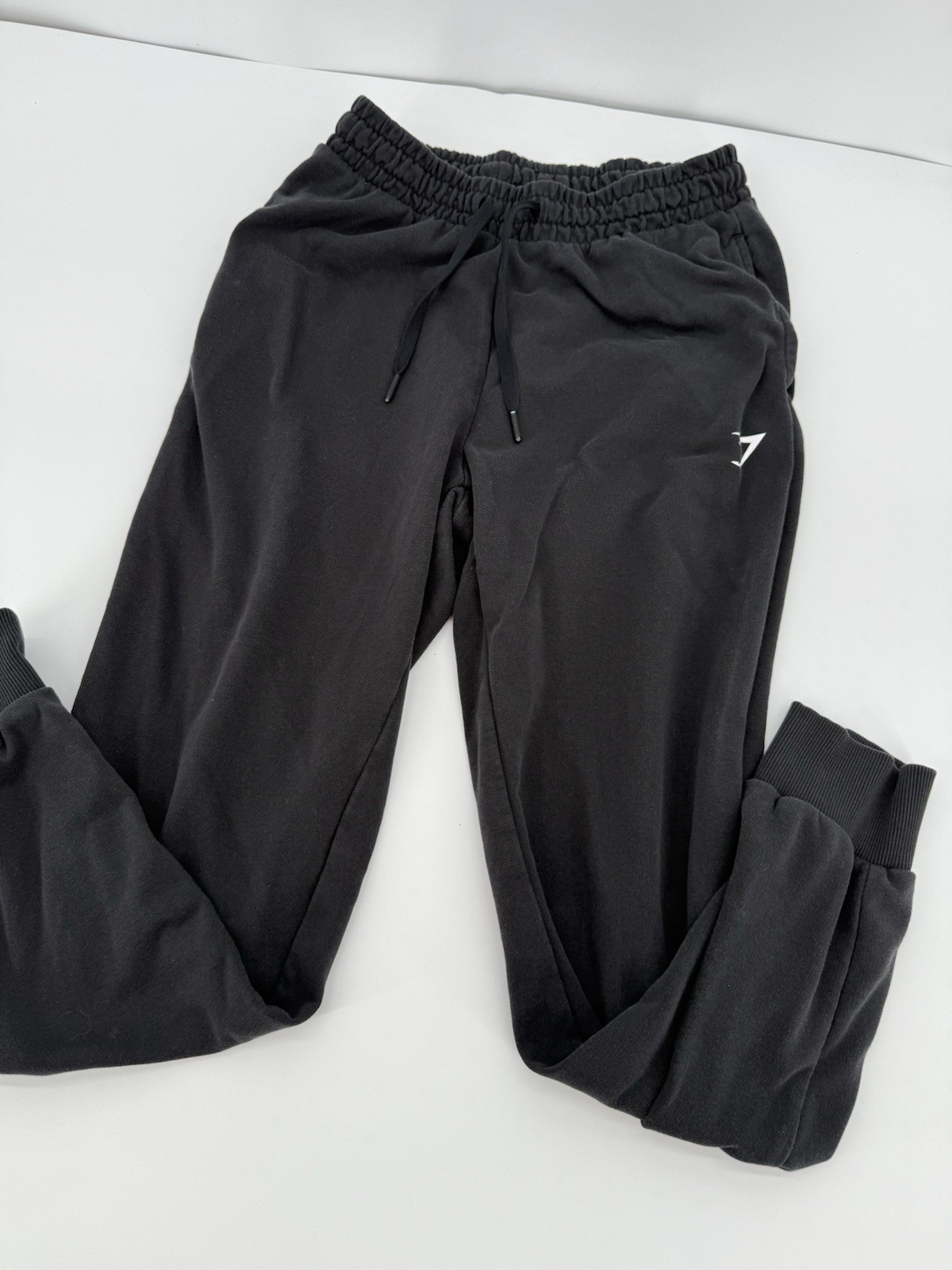 Gymshark Women Pants Small Black Drawstring Pocket Jogger Sweat Gym Stretchy. Length:35