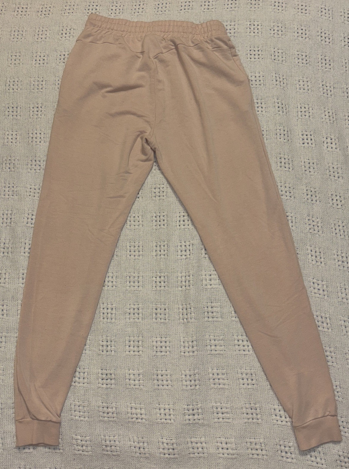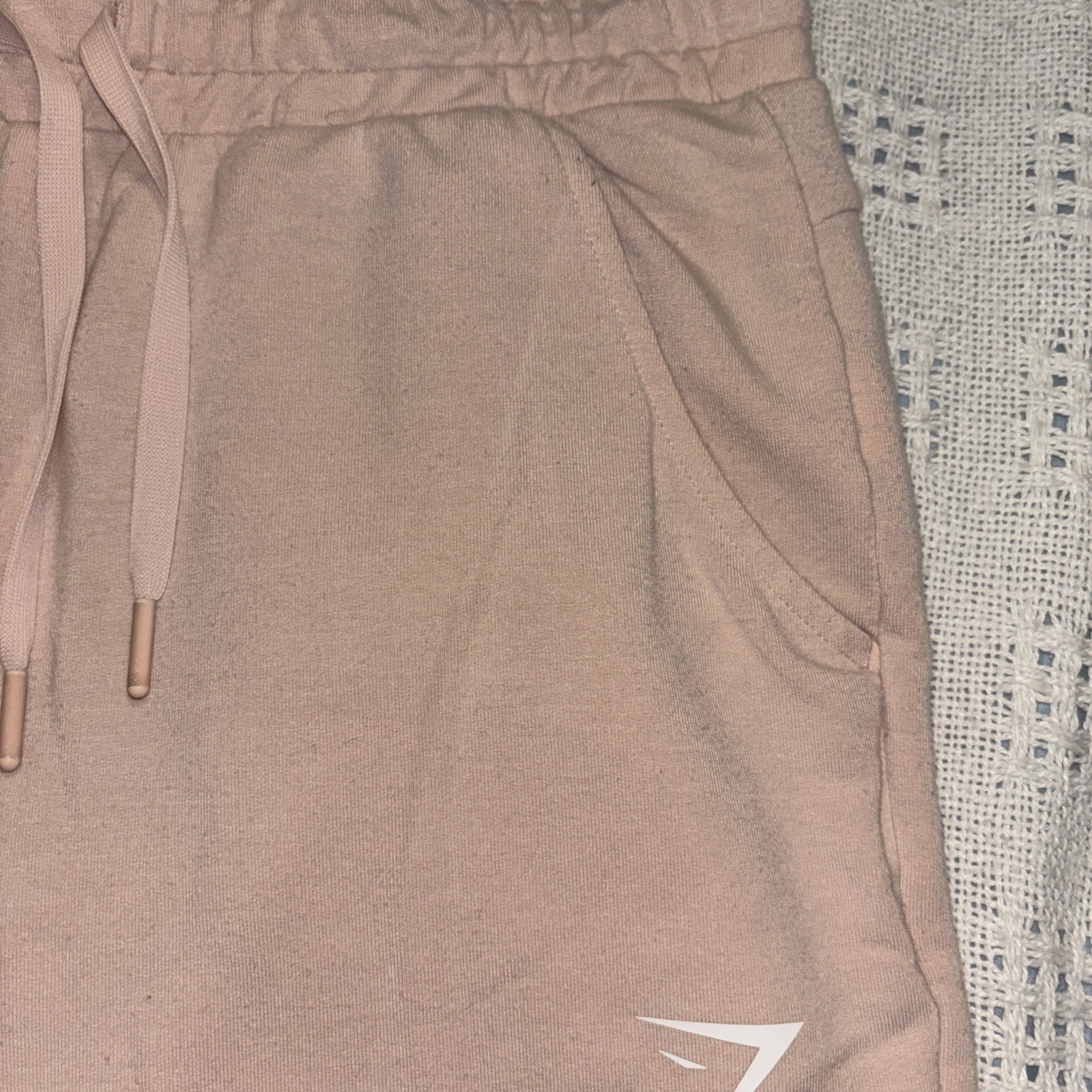The Gymshark Joggers in dusty pink are a versatile and stylish choice for women on the go. Made from a comfortable blend of polyester, spandex, viscose, and cotton, these fleece fabric joggers feature a pull-on closure with an elastic waist for a personalized fit. With a tapered leg style, these activewear pants are perfect for both gym workouts and casual lounging, offering a blend of athleisure and sports-inspired design. Complete with pockets for convenience, these machine washable joggers are a must-have addition to any woman's wardrobe.