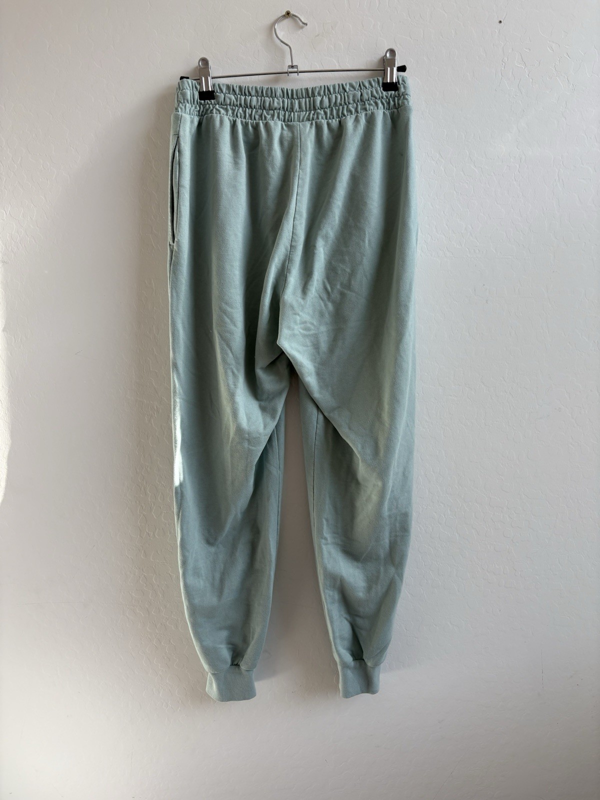 The product is a pair of Gymshark sweatpants for women in size small, featuring a mint green color with a solid pattern. These sweatpants have an elastic waist for comfort and a tapered leg style. Made from a blend of polyester, spandex, and cotton, they are machine washable and suitable for activewear occasions. The pants are designed for athletic fit and are perfect for activities such as gym training and running. With a brand like Gymshark, these sweatpants also incorporate athleisure, logo, and sports themes. Ideal for all seasons, these sweatpants are a stylish and versatile addition to any workout wardrobe.