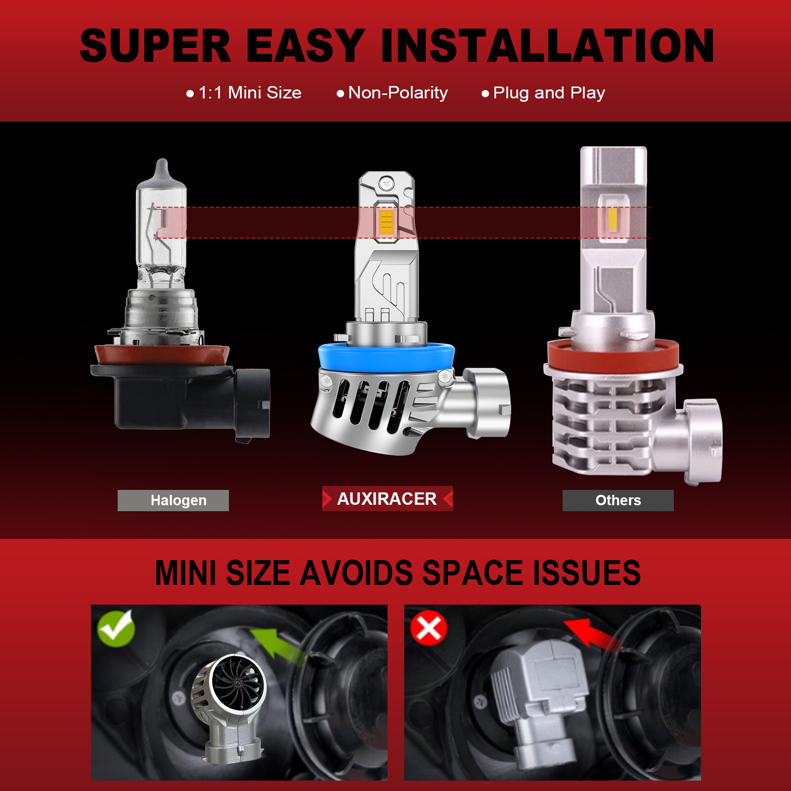 Specifications Bulb Size: H11/H16/H8/H9 Usage: High Beam or Low Beam or Fog Light Package includes: 2 Bulbs Voltage: DC 12-16V Light Power: 60W/set (30W/bulb) Luminous Flux: 7000LM/set (3500LM/bulb) Color Temperature: 6,000K Xenon White Lifespan: Over 30,000 hours Certification: IP67 Waterproof, CE, RoHS NOTE: 1. Our LEDs replace halogen only, they don’t fit your vehicle with factory LEDs and HIDs . 2. Fitment Compatibility may not be 100% accurate, if you are not sure which bulb size you need, please check your vehicle manual or stock bulb model. 3. LED bulb is low power device, the following issues may occur if you want to use LED bulb on some European vehicles: Hyper Flashing, No Flashing, or Error Code. Those are NOT problems of LED bulb and NOT covered by warranty. You may simply add a set of load resistor (NOT included) to avoid those issues. It can be solved with a decoder (decoder must be purchased separately). Features SUPER BRIGHT : 100% truly 60W, 7000LM per pair with stronger, more concentrated light output, much brighter than the original halogen bulbs, allowing you to see more clearly when driving at night. OPTIMAL BEAM PATTERN : Our LEDs have the same beam pattern as the halogen bulbs with a clear cut off line, without any dark spots or shadow areas and no glare to oncoming traffic. 5 - M IN EASY INSTALLATION : All-in-one mini size design, bulid-in driver for taking up less space in housing, no bulky external driver, no extended bulb base, no more modification on housing or cover. Directly plug and play, smoothly fits into vehicle's housing and factory sockets even with limited space in original housing. LONG LIFESPAN : The efficient cooling system is equipped with copper substrates with extremely high heat transfer efficiency, integral aerospace aluminum body, unique hollow engraved heat sink design and smart IC, ensuring a longer life of the LED conversion kit. Payment Shipping Return Contact us FAQ Payment 1. We gladly accepts payment via PayPal, We will ship your item(s) within 24 hours. 2. Before payment, please keep the consistency of Paypal address and ebay address. 3. Quantity orders are welcome. Shipping 1. All items will be shipped in 24 hours after receiving your payment. 2. We ship this item to US only via USPS or UPS. It usually takes 3-6 working days for delivery. Return 1. We offer a 30 days return policy. Please contact us within 30 days of receiving your order if you have any issues about the product or would like to return it. Refunds will be sent after we receive your returned package. 2. All returned items should be in the original packaging, return tracking information should be provided. 3. Buyer is responsible for return shipping cost due to the problem not caused by item quality itself . Contact us 1. We maintain high standards of excellenceand strive for 100% customer satisfaction. If you have any questions, please feel free to contact us. 2. Negative feedback won't help solve any issues, please contact us via eBay messages before leaving negative feedback. The customer service will make every effort to help you solve your issues. 3. Feedback is very important to us. We request that you contact us immediately before giving us neutral or negative feedback so that we can address your concern satisfactorily. FAQ Q1: Will this bulb fit my vehicle? A: We can match almost any vehicle to one of our bulb sizes. eBay only lets us include some vehicle fitments per listing, but if your vehicle does not show up on the compatibility table at the top of our listings, welcome you to contact us for free consulation before purchasing a product. Q2: My item has not arrived, what's taking so long? A: Sometimes items take longer than expected, especially if it’s going far or to rural area. Check with your post office to see if your item has been held up. Sometimes USPS will not update a tracking number until it has arrived at its destination. If your item still has not arrived after a few days, let us know so we can double check for you and help solve it asap. Q3: Do I need to mention the Year, Make and Model in the notes when place order? A: YES. Please include the Year, Make, and Model in the notes section during checkout to ensure you receive everything needed for your kit! Q4: My bulbs won't fit, help! A: Special bulb holder may be required. See if you can take the holder from the stock bulb. If not, let us know. The bulb size may be wrong, double check the item you received with the item you ordered. Do you have an aftermarket lighting housing? These may not be perfectly fitted for aftermarket bulbs and will require some manual modifications. Q5: Neither side lighting up? Both sides flicker, flash, or work inconsistantly. A:Check the headlight fuses, and then check the ballast plugs to insure correct installation. If this doesn't work, there may be a voltage problem with the vehicle. You probably just need a relay or capacitor (decoder must be purchased separately). Q6: WARNING ABOUT POLARITY Unlike halogen bulbs, LED are polarity sensitive. BEFORE you start your LED kit installation, verify the polarity on your vehicle by simply plugging the LED bulb into your vehicle socket. - if your light turns on, please proceed to install both bulbs onto your vehicle. - if your light DOES NOT turn on, disconnect the bulb and flip the socket in order to reverse the polarity (this will not damage your vehicle electrical system in any way). Once you made sure the LED bulb turns on, please proceed to install both bulbs onto your vehicle. Note: There is no convention when it comes to polarity. Different car manufactures have different polarity setup, even within the car model the polarity setup on your low beams and high beams might be different. On Feb 23, 2025 at 18:50:37 PST, seller added the following information: