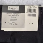 The HAGGAR Khaki Men's Pants in Black offer a classic fit with a flat front design for comfort and style. Made from cotton fabric, these pants feature a zip and button closure, along with a pleated front. Perfect for various occasions such as casual, formal, business, and parties, these straight-leg pants have a vintage appeal with subtle accents like a logo and pockets. With a waist size of 34 inches and an inseam of 34 inches, these pants by Haggar are a versatile addition to any man's wardrobe, suitable for all seasons. Measurements W- 34 inches L - 34 inches New with Tag Care Instructions - Machine wash warm - Durable press cycle - Do not use fabric softener - Wash dark color separately - Only non chlorine bleach as needed - Tumble dry medium - Remove promptly for Wrinkle free appearance - Warm iron as needed - For best results extend drying cycle to reinvigorate repellent properties - D not dry clean We’d love to hear your thoughts about our store! A positive review would mean the world to us. Thanks a bunch and have a great day!😊