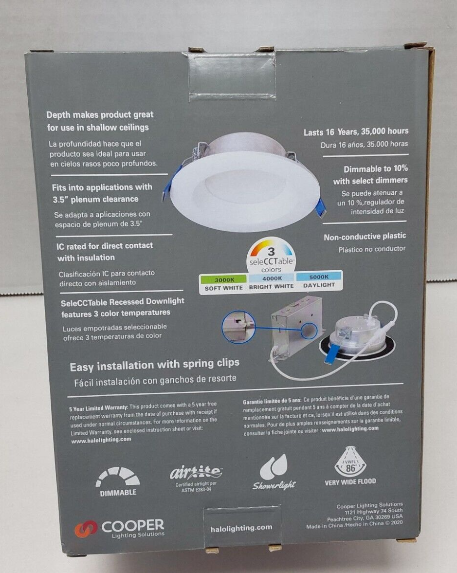 HALO 4-Inch Canless LED Recessed Light Selectable 3-5K CCT 600 Lumen White Light......... HIGH-QUALITY LIGHTING: HALO has been the most trusted name in lighting for over 65 years, and these Canless Recessed Lighting fixtures are no exception. They feature a safe, non-conductive, dead-front baffle trim and flat, diffuse lens design. Plus, they dim from 100% to 10% with continuous flicker-free dimming for customizable lighting. CANLESS: Halo LTDM4 Selectable Series Downlights are complete 4 inch canless recessed lights designed for use in new construction, remodel and retrofit installation, without needing a housing or junction box SELECTABLE: Choose your color temperature directly on the fixture. With the flick of a switch, you can choose between 3 color temperatures ranging from 3000K to 5000K prior to installing into your ceiling DIMMABLE: This Halo recessed lighting fixture features an LED driver that offers continuous, flicker-free dimming from 100% to 10% with select residential style phase cut dimmers. WET LOCATION LISTED: Wet location listed for showers and protected ceilings; Use for outdoor areas like covered porches, gazebos, outdoor walkways, showers, indoor dining areas, etc.......