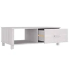 This wooden coffee table makes a decorative and practical addition to your decor. This center table is made of solid pinewood, making it stable and sturdy. The tabletop is ideal for placing food and drinks, decorative items, etc. Additionally, the side table features a drawer and a compartment, providing ample storage space for magazines, books and other essentials you'd like to keep within reach. Color: White Material: Solid pinewood, MDF Overall dimensions: 39.4" x 21.7" x 13.8" (W x D x H) Drawer outer size: 19.5" x 9.1" (W x H) Drawer inner dimensions: 16.5" x 13.2" x 7.1" (W x D x H) Compartment dimensions: 19.3" x 21.7" x 9.8" (W x D x H) Foot size: 1.6" x 1.6" (L x W) Features wooden handles Range: "HAMAR" Assembly required: Yes California Proposition 65 Warning: This product can expose you to chemicals including wood dust, which is known to the State of California to cause cancer. For more information go to . Shipping Restrictions Due to the limited access of our couriers, this item cannot be delivered to the following locations: Alaska Federated States of Micronesia Guam Hawaii Marshall Islands Military Posts (APO / FPO) Palau Puerto Rico US PO BOX Virgin Islands Our customer support will contact buyers for orders with no shipment service, and these orders will be cancelled and fully refunded afterwards.