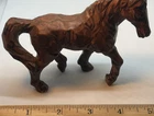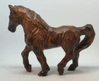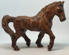 This vintage folk art horse pony figurine is a stunning addition to any collection. Crafted from wood with intricate hand carvings, it showcases the beauty and majesty of the horse in a unique and timeless way. Perfect for collectors of horses or folk art, this piece is a must-have for anyone who appreciates the artistry and skill of traditional wood carvers. Whether displayed on a shelf, desk or mantle, this figurine is sure to add a touch of rustic charm and elegance to any space.