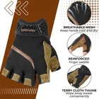 Product description Shock-Absorbing&Easy Pull Tabs Cushioned padding reduces impact strain. Quick pull tabs allow easy on/off, saving you time and effort during work. Perfect for frequent use. Breathable Mesh Back Mesh back enhances airflow to keep hands cool and dry. Reduces sweat during extended wear, maintaining comfort in warm conditions. Reinforced Finger Saddle The reinforced finger saddle boosts durability in high-wear areas. A honeycomb TPR guard on the wrist protects against impacts and shocks during jobs. Adjustable Wrist&U-Shaped Cuff Customizable closure ensures secure fit. U-shaped cuff supports wrist movement while keeping gloves firmly in place. 1 Machinery Gloves 2 Mechanic Gloves 3 Tool Handling Gloves 4 Driving Gloves Product Description Men’s pro Fingerless exposed fingertips all purpose work gloves,Provide precise flexibility to ensure the completion of work and protect the safety of hands during work. Uwrist design fits the glove cuff. let you don’t need to take off your watch when you work,help you not forgot time while working. Adjustable TPR closures let the gloves fit your hands while working, and do not fall off. Breathable mesh cloth on the back of the hand to keep work dry and cool. Palm sponge thickened and filled improve comfortable,reduce friction caused by work. Wear gloves to enjoy work and protection your hands.