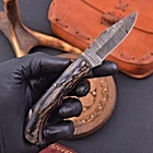 CUSTOM HAND MADE FORGED DAMASCUS STEEL FOLDING BLADE POCKET CAMPING KNIFE Pakka Wood Handle This superb design knife is hand forged. Blade of this knife has a nice file work and is made of 512 layers of 4340 stainless steel and 1075 high carbon steel and hardness 55-58 HRC . This robust knife is lab tested under intense conditions, the balance and shape of this knife ensures perfect grip. Overall Close Length: 3.75” Inches Blade Length: 3.25”Inches Handle Length: 3.75”Inches Damascus Design: Twist Pattern Layers: 512 Sheath: Leather Hand Forged Hardness: 55-58 HRC Package Includes: with Sheath Care Instructions: Keep the knife dry after each cleaning. Warning: Take care when removing product from packaging. Keep fingers clear of blades. Store away from children.