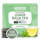 HANDPICK, Lemon Balm Tea Bags (100 Herbal Tea Bags) Melissa Tea - Caffeine-Free, Citrus Flavor & Aroma | Pure Ingredients - Lemon Balm Leaves | Brew Pure Lemon Balm Tea Product Details Package Dimensions : 6.38 x 5.59 x 2.8 inches; 3.53 ounces UPC : 810001618087 Manufacturer : VAHDAM Brand: HANDPICK Item Form: Teabags Flavor: Lemon Tea Variety: Lemon Balm Unit Count: 100.00 Count CITRUSY & DELICIOUS LEMON BALM HERBAL TEA - Indulge in the citrusy and delicious flavors of our Lemon Balm herbal tea, a delightful infusion that will captivate your taste buds. Each sip offers a refreshing and invigorating experience, making it the perfect choice for a beverage as it delights your senses with its vibrant citrus notes and delightful flavors. NON-GMO, GLUTEN FREE & PURE LEMON BALM TEA- HANDPICK brings a unique twist in your daily cup of herbal tea, brewing the flavors and nutrition of Indian spices that is Gluten Free, Caffeine Free and loaded with nutrition of pure ingredients that will instantly become your new favorite. Just a bliss of pure herbal tea loaded with nutrition and taste without any artificial flavor, added preservatives! EMBRACE A BALANCED LIFESTYLE.- Add this tisane that smells good, tastes good, and does good to your daily regime to put a pep in your step whenever you need it with this nutritious tea made of pure ingredients and no added preservatives. WE CARE FOR PEOPLE & PLANET - We are now a proudly Carbon-Neutral & a Plastic-Neutral brand. We measure our overall carbon & plastic footprint & offset it via our investments in environment sustainability initiatives in India.