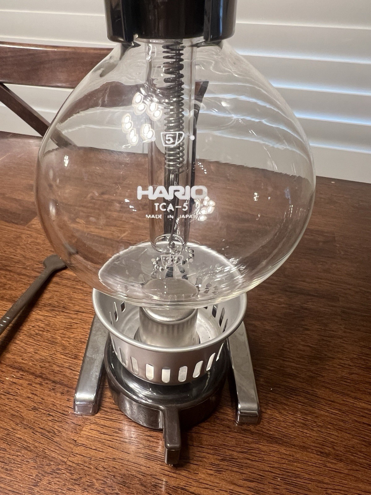 The HARIO Syphon Coffee Maker TCA-5 is a high-quality coffee maker imported from Japan. Made of clear glass with a shiny finish, this coffee maker is designed for making 5-6 cups of coffee. Perfect for coffee enthusiasts who appreciate the craftsmanship and precision of Japanese-made kitchen tools, this Hario coffee maker offers a stylish and functional addition to any kitchen. Made by the reputable brand Hario, this coffee maker is sure to deliver great-tasting coffee every time.