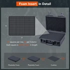 HC-3511 waterproof hard case with precut cube foam Interior Size (with foam): 12.8x8.46x5.04 in / 32.5x21.5x12.8 cm | Interior Size (empty case): 13.74x9.72x5.31 in / 34.9x24.7x13.5 cm | Exterior Size: 14.96x12.01x5.75 in / 38x30.5x14.6 cm Case is made of new instead of recycled Polypropylene resin to ensure ruggedness SGS certified IP67 watertight guarantees safety in harsh environment with water, dust, mud, sand, etc. 2 pieces of foam can be easily configured by tearing along the shape's boundaries and removing the foam to fit the object 9 features of the case make it stand out when comparing user experience with other cases quality and lifetime limited warranty for the case