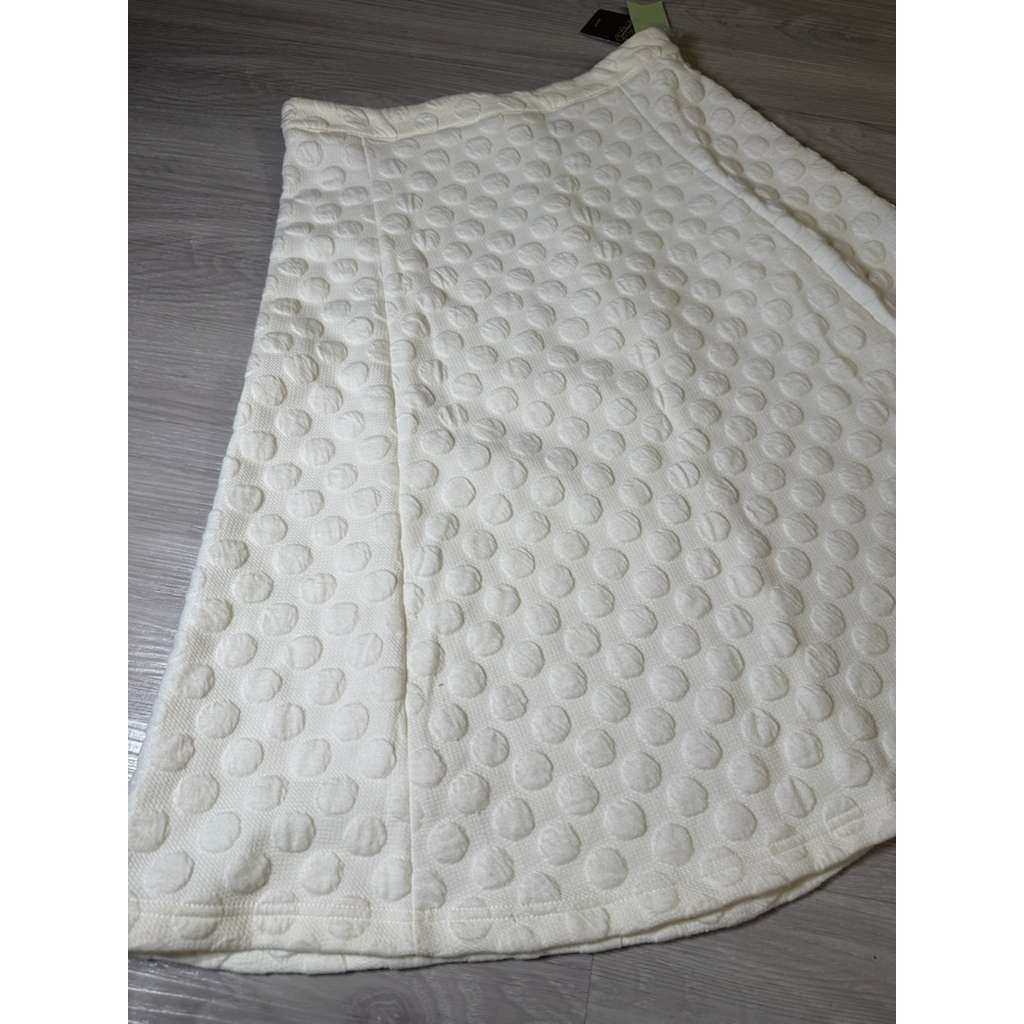 Discover a charming textured skirt with a delightful circle pattern, offering a unique and playful aesthetic. This cream white A-line midi skirt features a subtly raised dot pattern that adds dimension and visual interest, creating a sophisticated yet whimsical feel. The flattering A-line silhouette and midi length make it incredibly versatile, perfect for dressing up or down. Type: Skirt Style: A-Line Skirt Length: Midi Department: Women Material: Polyester, Spandex, Rayon Pattern: Geometric Accents: Quilted Fabric Type: Knit Features: Lightweight, All Seasons Closure: Zip Occasion: Casual Season: Spring, Summer, Fall Garment Care: Dry Clean Only Country of Origin: China Unit Type: Unit Keywords: textured skirt, circle pattern, A-line skirt, midi skirt, cream skirt, white skirt, womens skirt, playful pattern, garden party, brunch outfit, sophisticated, whimsical, unique texture