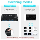 HDMI KVM Switch, 8K USB Switch 2x1 HDMI2.1 Ports + 4X USB3.0 KVM Ports, Share 2 Computers one Monitor Switch, Supports 8K 60Hz,4K 120Hz,YUV 4:4:4, HDCP 2.3, HDR 10, Hotkey, Darkish HDTeka HDMI KVM switch connects two computers to keyboard, mouse and monitor An ideal device for connecting two HDMI signal source output devices (such as computers, laptops, video recorders, etc.) and outputting HDMI signal sources to one HDMI display device (such as TV, projector, LCD monitor, etc.). Switch between games and office directly and freely. Hotkey Switching Supports Keyboard hotkey switch to another pc Ctrl+shift+1 switch to PC 1 Ctrl+shift+2 switch to PC 2 NOTE: Using the hotkey function requires a keyboard to be connected to the keyboard port Button Switching The HDMI KVM switch operates with manual switching buttons Switch between two HDMI sources at the touch of a button for easy play and work time 4 X USB3.0 ports The maximum transmission bandwidth of USB3.0 is as high as 5.0Gbps (500MB/s), which is 10 times that of USB 2.0 NOTE:USB3.0-related functions can only be used after installing USB3.0-related hardware devices on the computer An extra power supply(DC 5V) is needed whenpower-hungry devices are connected, to ensure stable video transmission and better performance. ( included power Adapter ) The LED indicates the active computer, and the red light is on to indicate which computer is currently in use. KVM Switch in a durable metal housing to ensure superior signal transfer, and better heat dissipation to enhance the life of the device.
