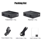 HDMI EXTENDER WITH KVM Change the mode of audio and video signals for longer distance transmission, HDMI IN --- CAT X --- HDMI OUT. Specifications: 1.Video ◇ Standards---HDMI 1.3 ◇ Maximum pixel clock---165MHz ◇ Maximum data rate---6.75Gbps ◇ Resolution---1920X108060Hz ◇ Connector---HDMI-A ◇ Impedance---100Ω 2.Ethernet ◇ Interface---RJ45 ◇ Transmission distance---CAT6---50m/164ft; CAT5E---40m/130ft; CAT5-30m/100ft 3. USB ◇ Interface protocol---USB1.1 ◇ Interface type --- PC: USB-B; KVM: USB-A ◇ Signal type --- Digital signal 4.Others ◇ Power supply--- Input: 110~220V; Output: 12V/1A ◇ Power dissipation---MAX 3W ◇ Temperature---Operating: -5℃ ~ +70℃ ◇ Humidity---Operating: 5% ~ 90% ◇ Dimension---94*71*26 mm 5. Packing list ◇ HDMI transmitter---1 pcs ◇ HDMI receiver---1 pcs ◇ USB-B Cable---1 pcs ◇ Power adapter---1 pcs ◇ User manual---1 pcs FHD 1080P Video: Transmit your signal to remote displays without signal loss. Support 1080p60hz HD resolution Transmission Distance: HDMI over Ethernet up to 50m/164ft by Cat6/7, 40m/130ft by Cat5e, complies with RJ45 line sequence T568B Simpler Connection : Power over cable, only power adapter is needed to get the device running completely KVM Control: Support connecting USB keyboard and to control your signal source NVR Application : Stable signal connection scheme. Suitable for home system, monitoring, conference hall broadcasting, restaurant projection and more