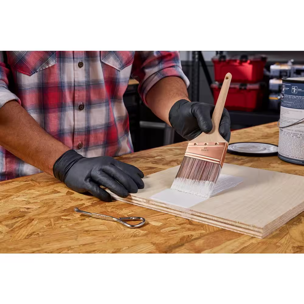 HDX Pop-N-Go Disposable Heavy Duty Nitrile Gloves (80-Count) The HDX heavy duty Pop-N-Go nitrile gloves are one of a kind. This dual layer glove has an orange interior that easily exposes tears in the glove. Gloves dispense one-at-a- time, cuff first, in a convenient clean package that can be resealed and stored on the jobsite or in a vehicle glovebox. The gloves are both powder free and latex free. Touchscreen compatible Chemical resistant Powder free latex free 6 mil thickness 40 pairs Painting, cleaning, automotive Disposable Compact/Portable packaging