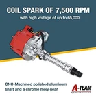 HEI 4.3L V6 Distributor Kit with High-Voltage Ignition Coil and One-Wire Vacuum Cap Advance for Chevrolet GM GMC HEI 4.3L V6 Distributor Kit with High-Voltage Ignition Coil and One-Wire Vacuum Cap Advance for Chevrolet GM GMC Compatible with Chevrolet, GM, and GMC 4.3L 262 V6 engines, ensuring seamless EFI to carburetor transitions. Features a 65,000-volt ignition spark for high voltage durability and peak engine performance. Constructed with CNC-machined aluminum body and chrome moly gear for long-lasting reliability. Easy one-wire installation design simplifies setup and integration with V6 engine systems. Includes essential components like distributor pickup coil and coil wire for a complete ignition overhaul.
