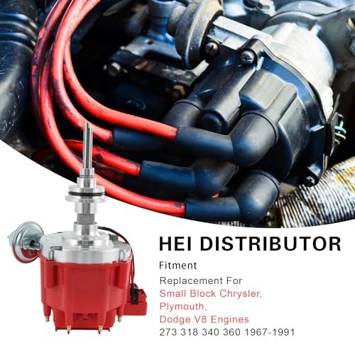 HEI Distributor Replacement for Chrysler Dodge Plymouth V8 Engines 318 340 360 65K HEI Distributor Replacement for Chrysler Dodge Plymouth V8 Engines 318 340 360 65K Composed of a rotor, cover, and module, all 100% brand new Compatible with distributor part numbers JM6513R, PC6006, HEI013R Fits Chrysler, Plymouth, and Dodge 273, 318, 340, 360 small block engines from 1967-1991 Installation requires marking the direction and angle of the split head Timing position can be slightly adjusted after installation for optimal performance