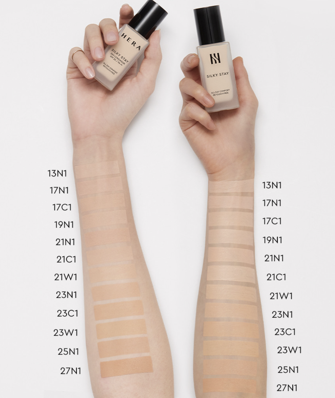 Sun Protection Factor (SPF): SPF 20 Department: Women Type: Foundation Skin Type: All Size: Travel Brand: Hera Model: Silky Stay 24H Longwear Foundation Effect: Silky Shade: Beige, Ivory, Pink Formulation: Liquid Features: Long Lasting Country of Origin: South Korea (Republic of Korea)